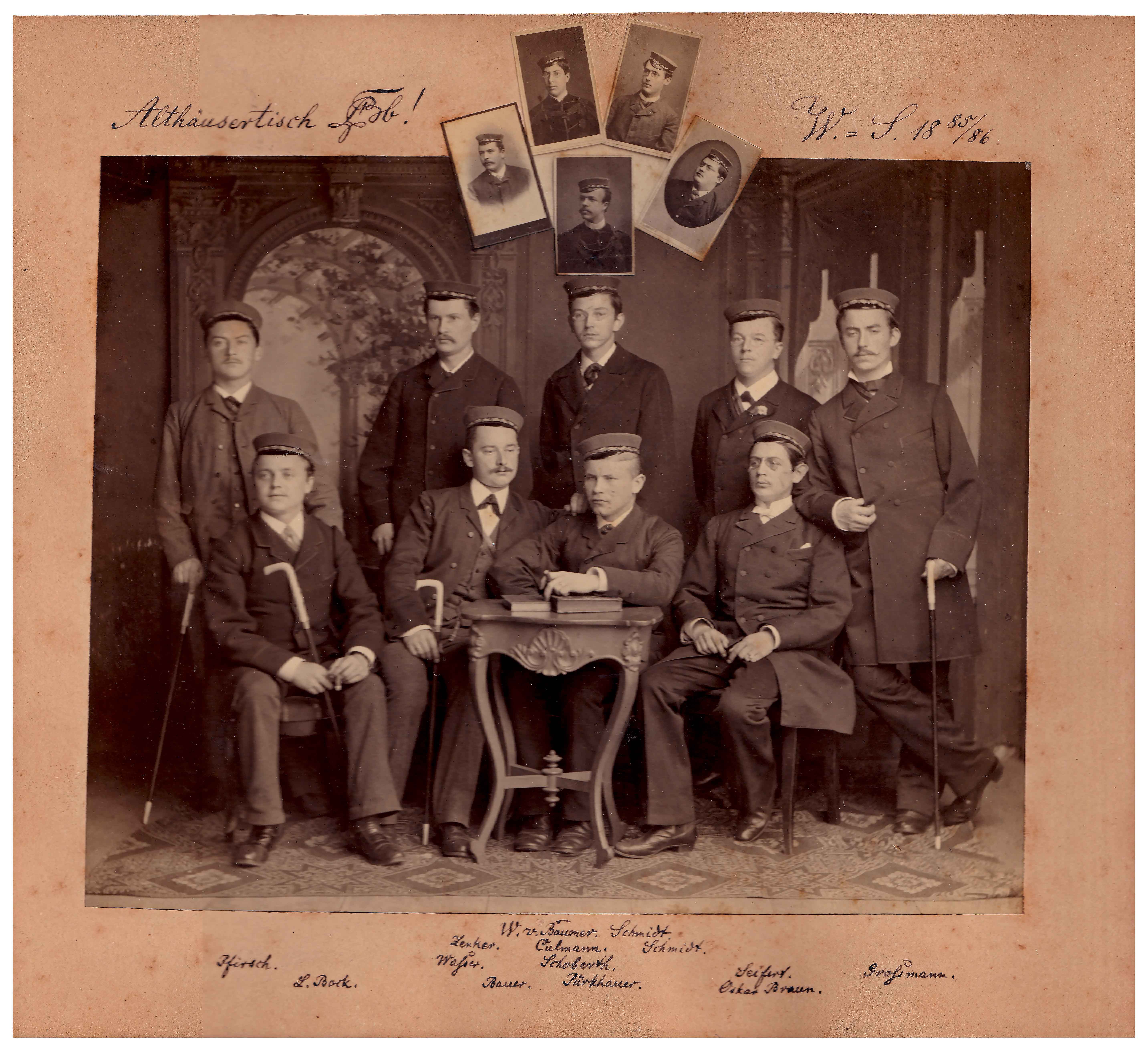 Sitzend: L.Bock. - Bauer. - Purkhauer. - Oskar Braun.