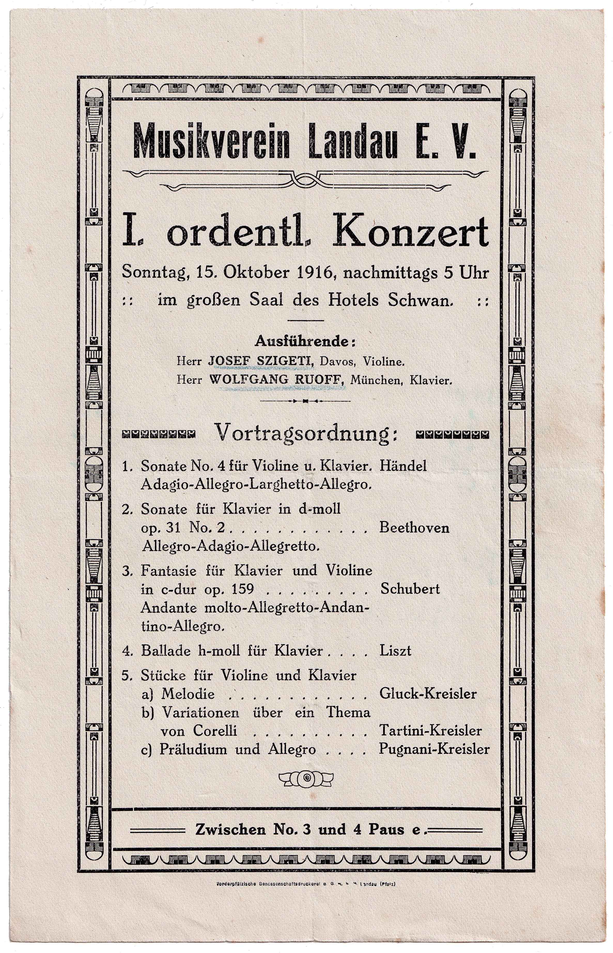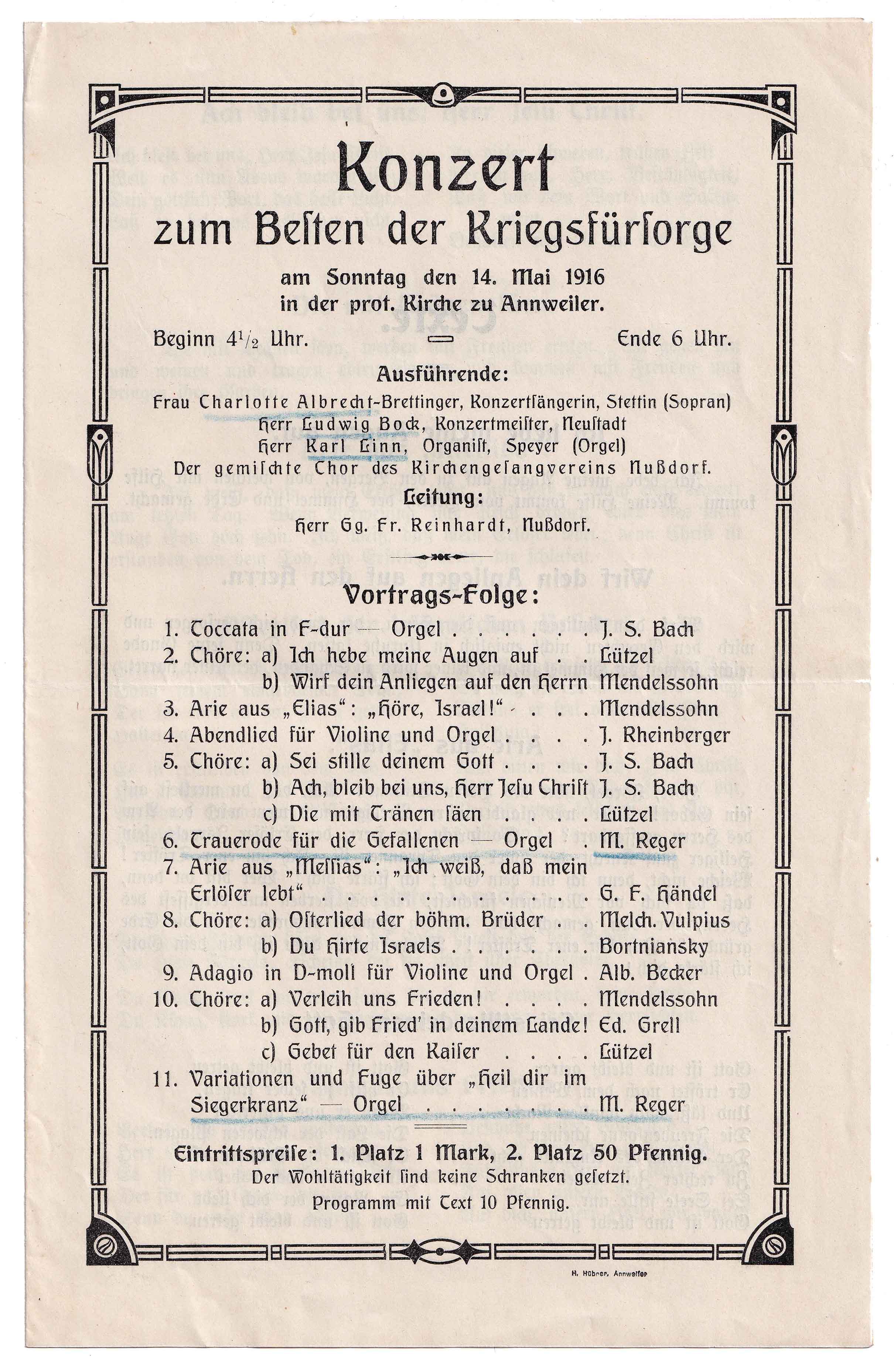 Konzert zum Besten der Kriegsfürsorge
