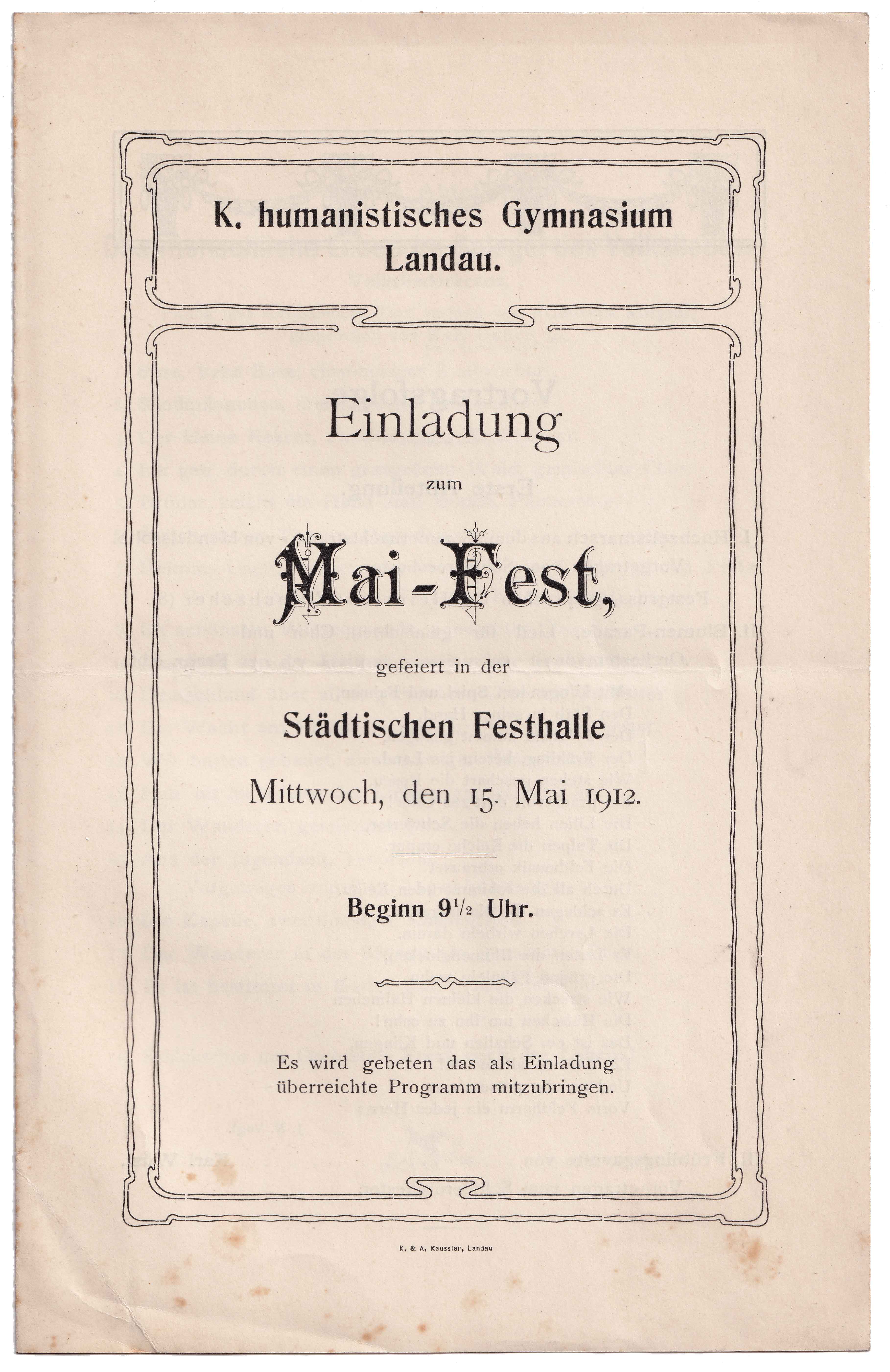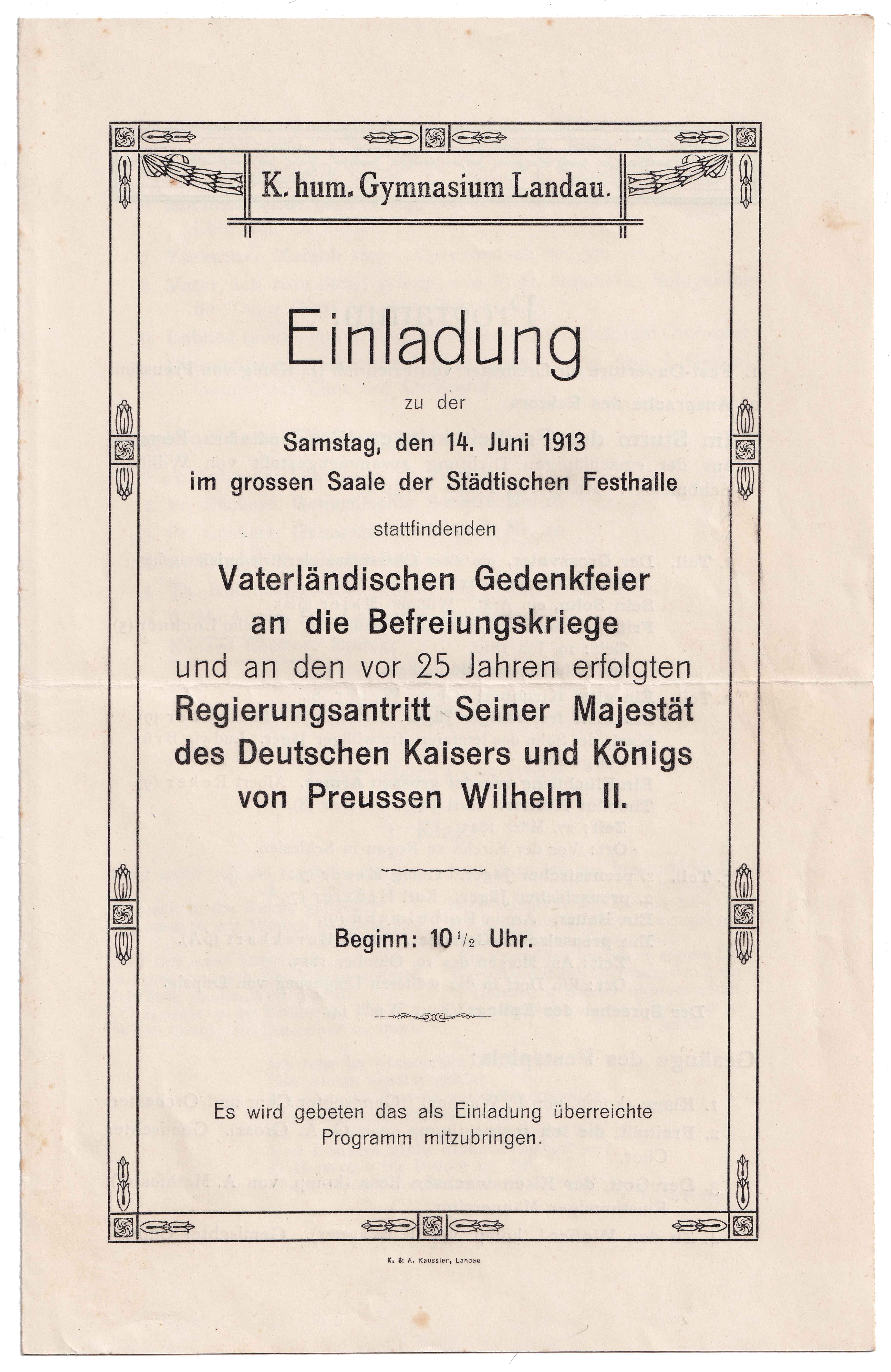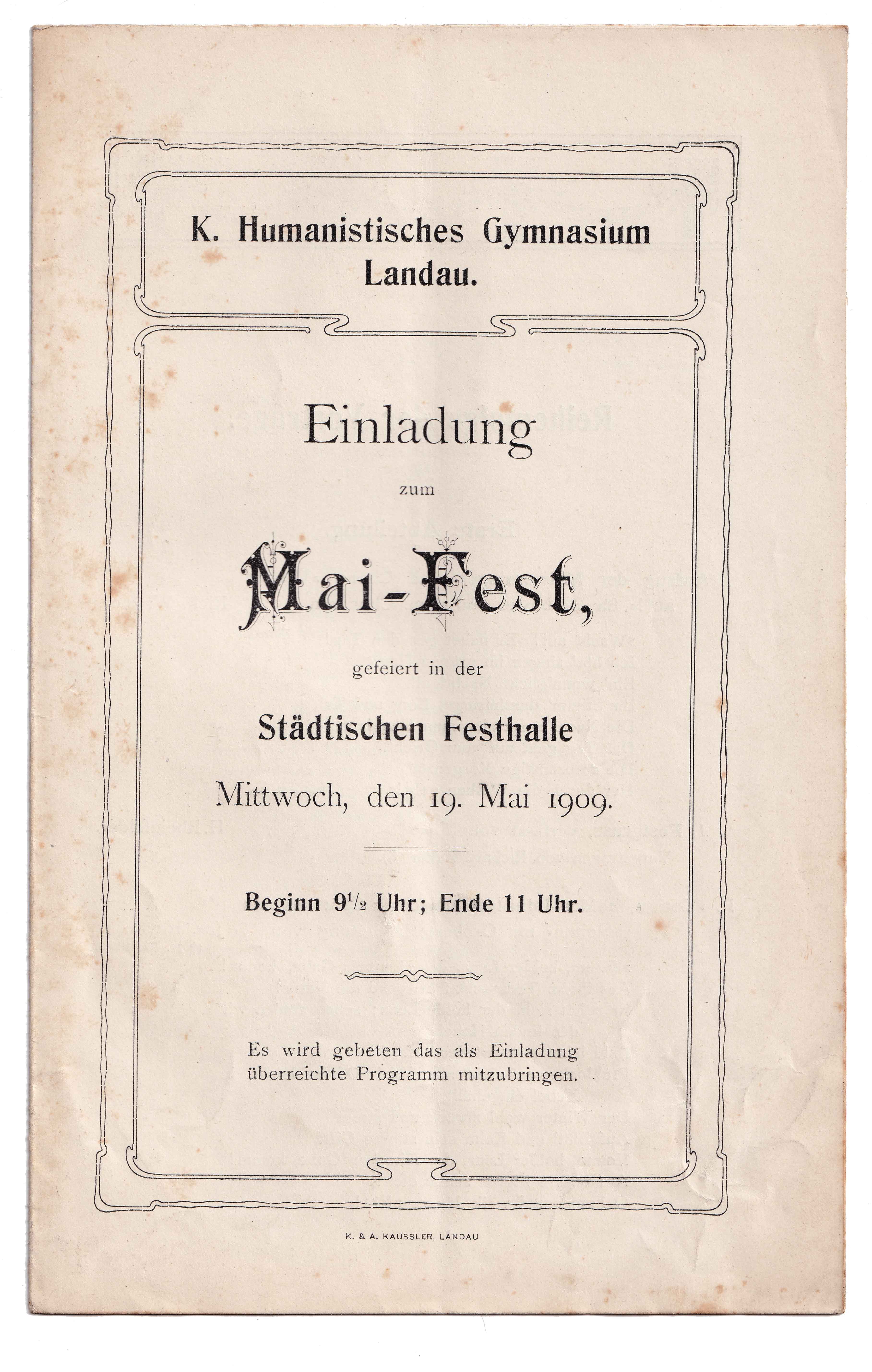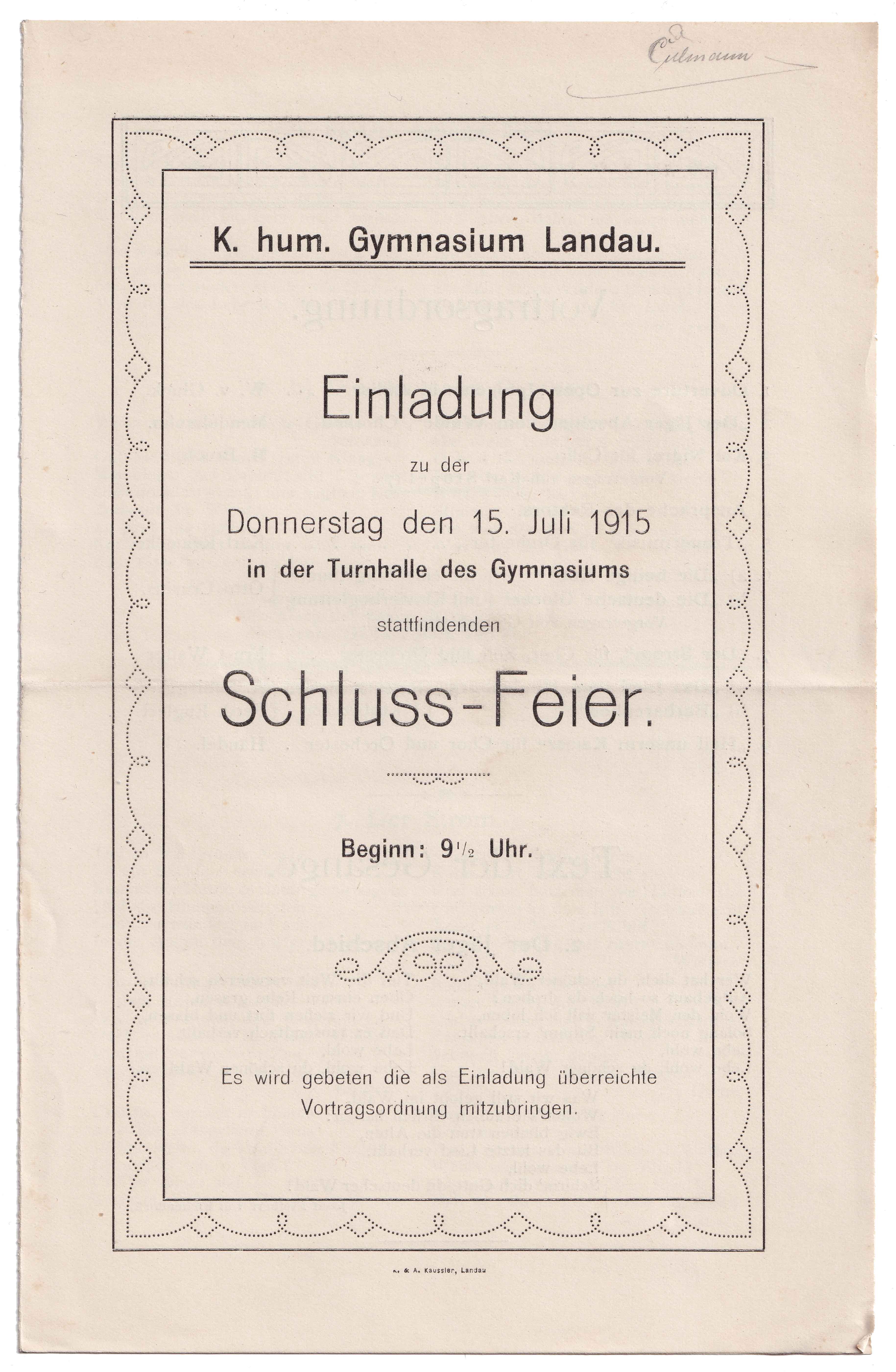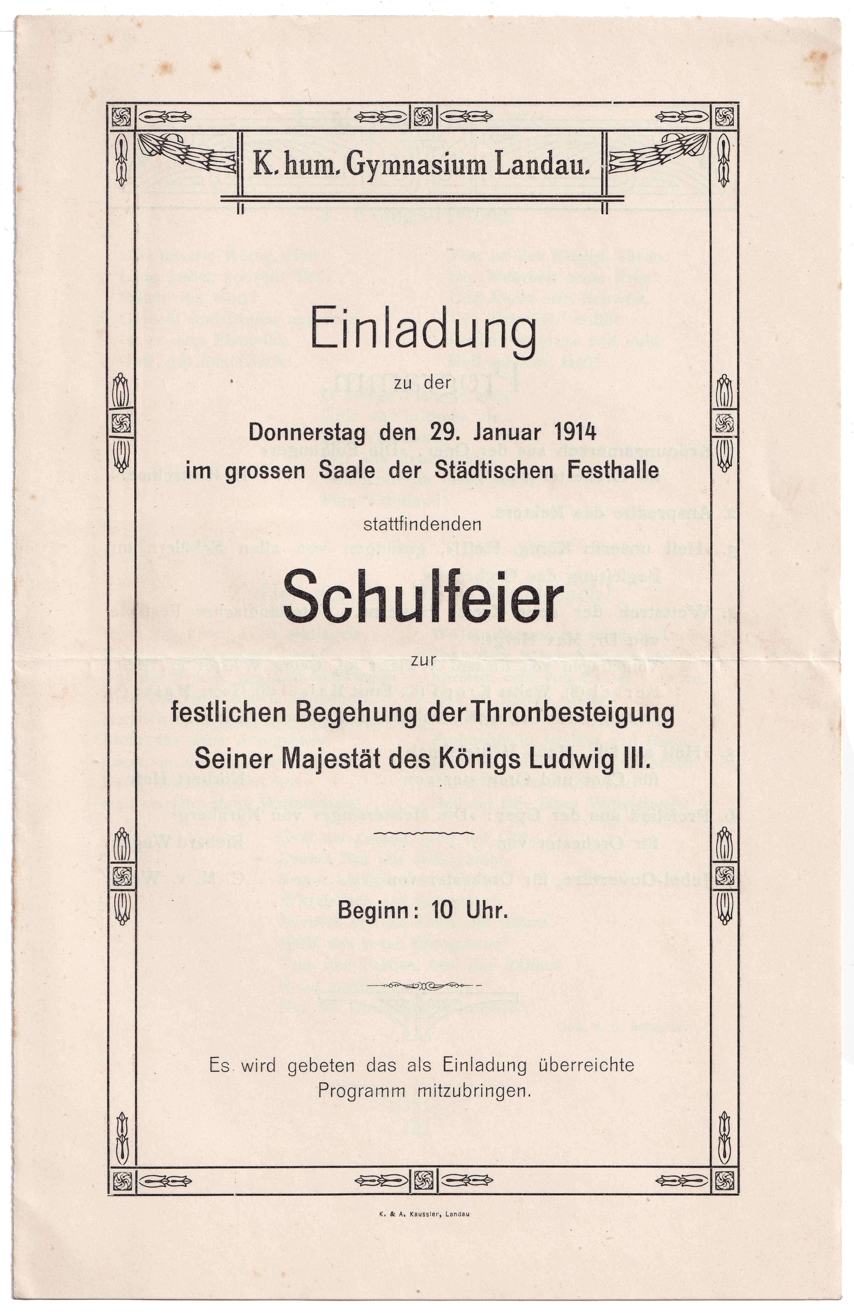 Einladung zur Schluss-Feier im großen Saale der Städtischen Festhalle