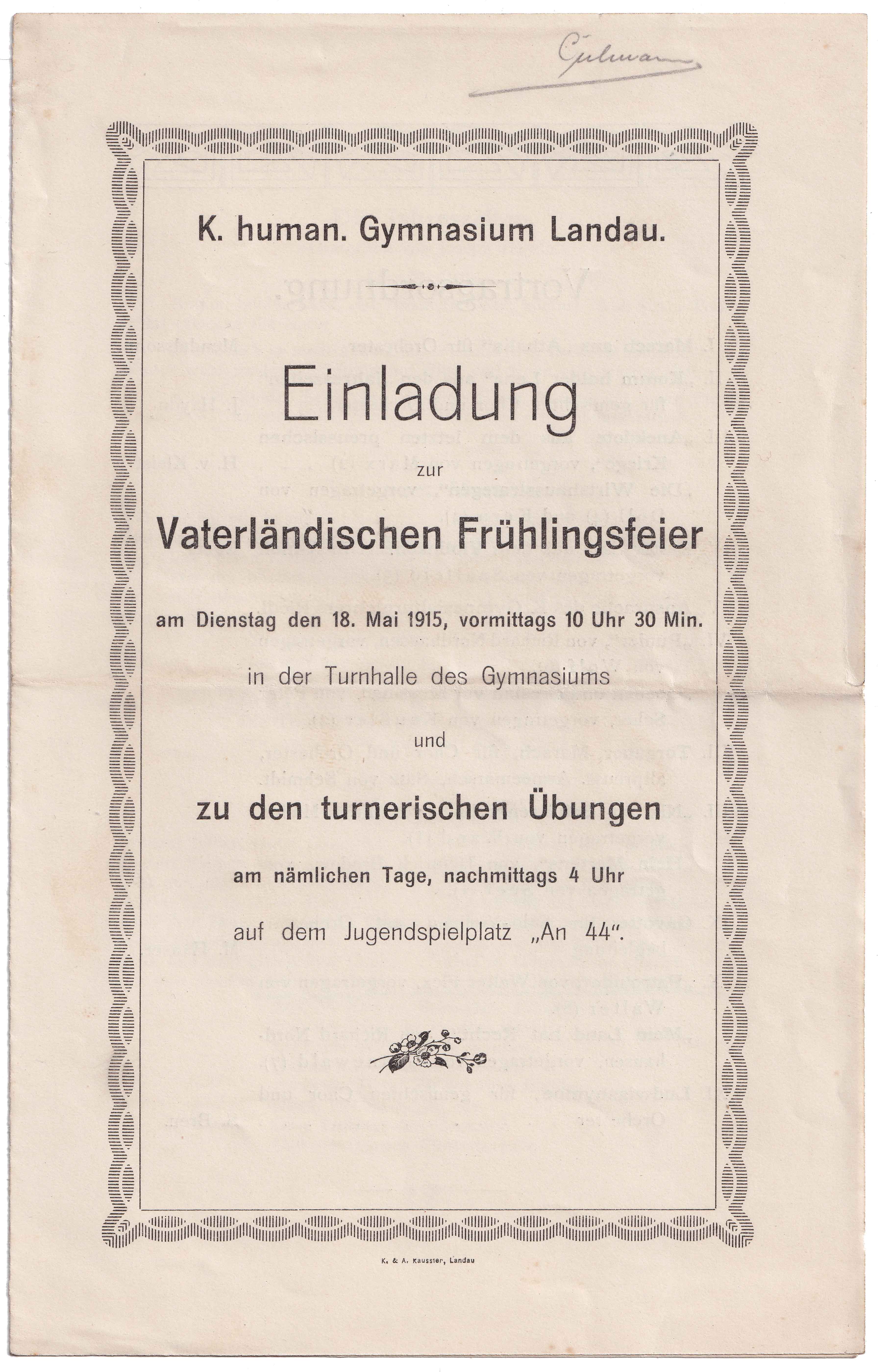 Einladung zur Vaterländischen Frühlingsfeier