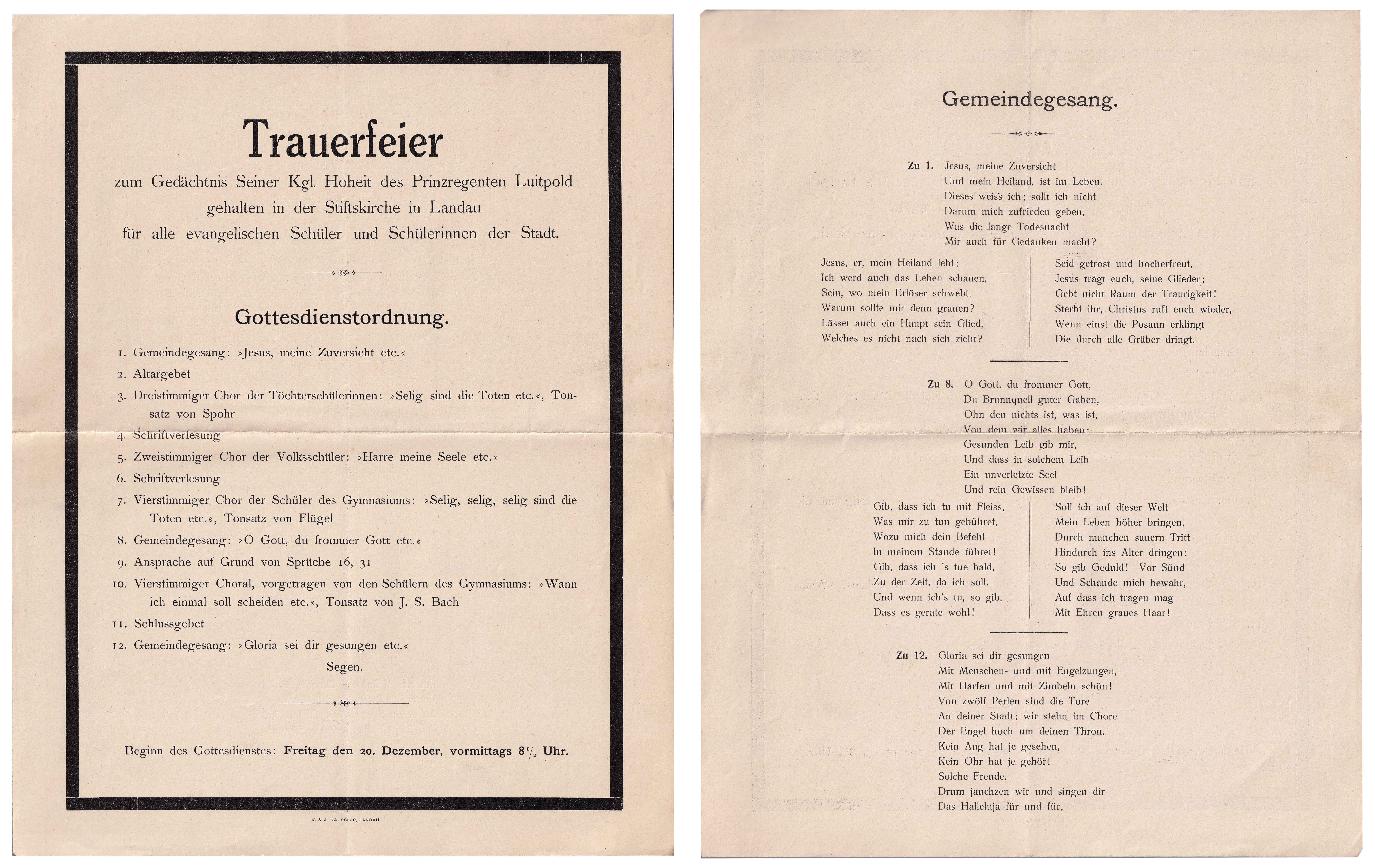 Trauerfeier zum Gedächtnis Seiner Kgl. Hoheit des Prinzregenten Luitpold