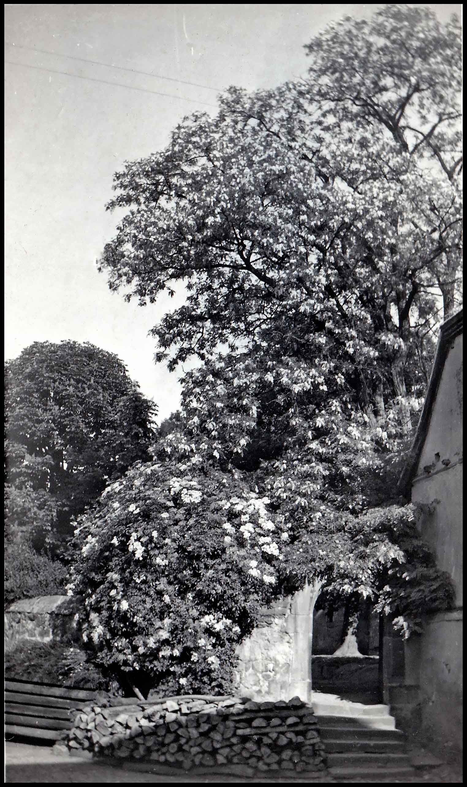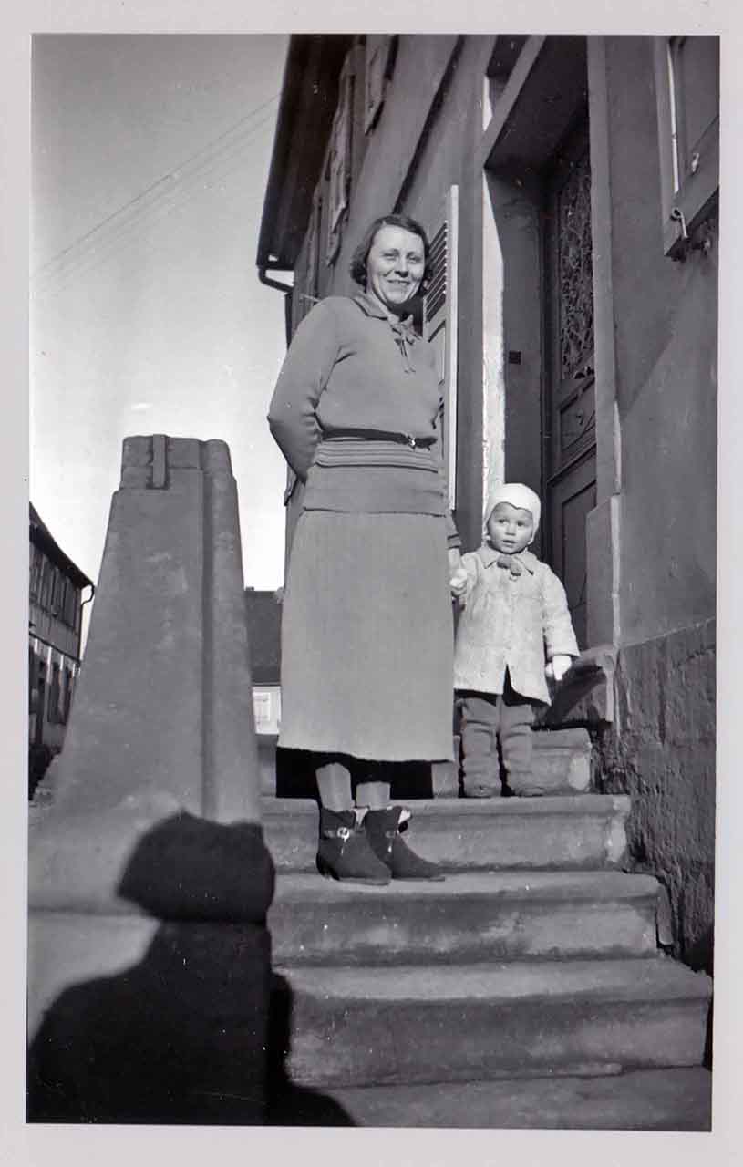 Olga mit Soldaten vor dem Billigheimer Pfarrhaus.