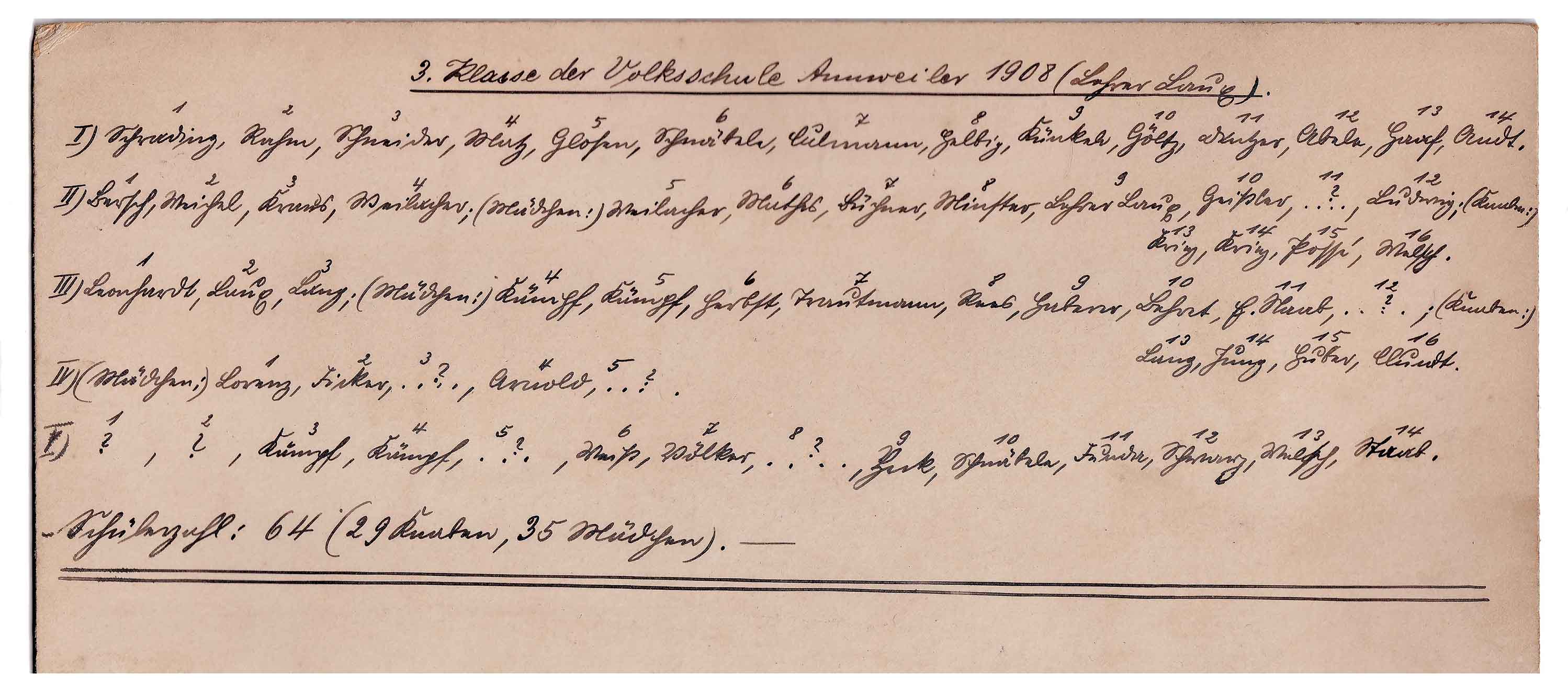 3. Klasse der Volksschule Annweiler 1908 (Lehrer Laup).