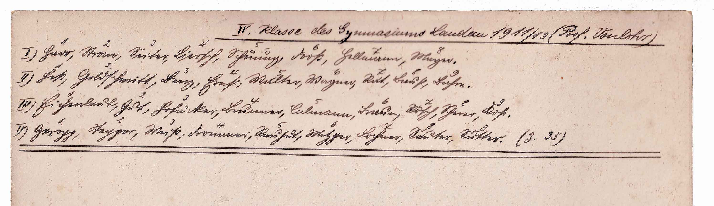 4. Klasse des Gymnasiums Landau 1911/13 (Prof. Vonlohr).