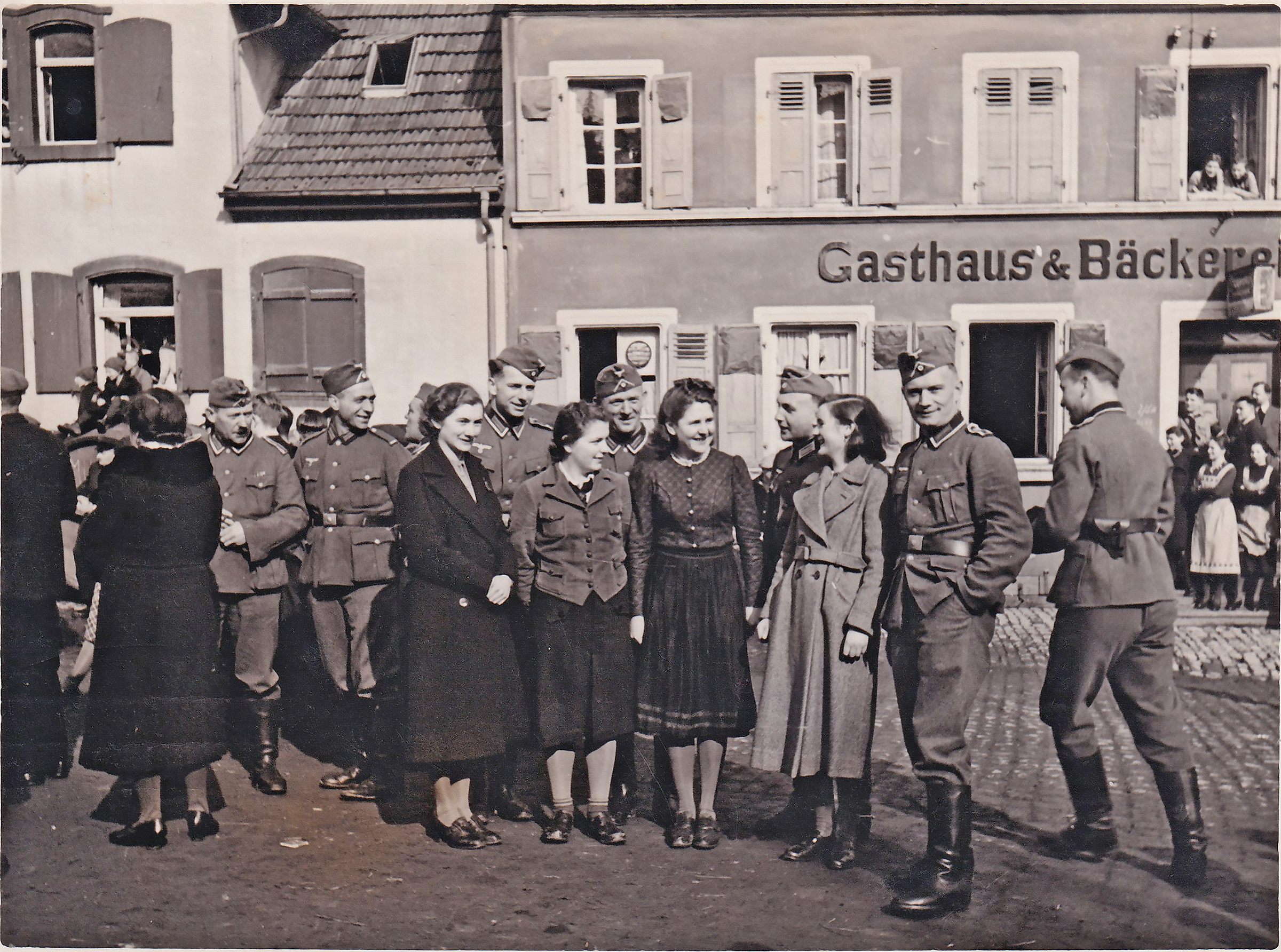 Marliese mit Freundinen und Soldaten auf dem Marktplatz (1940)