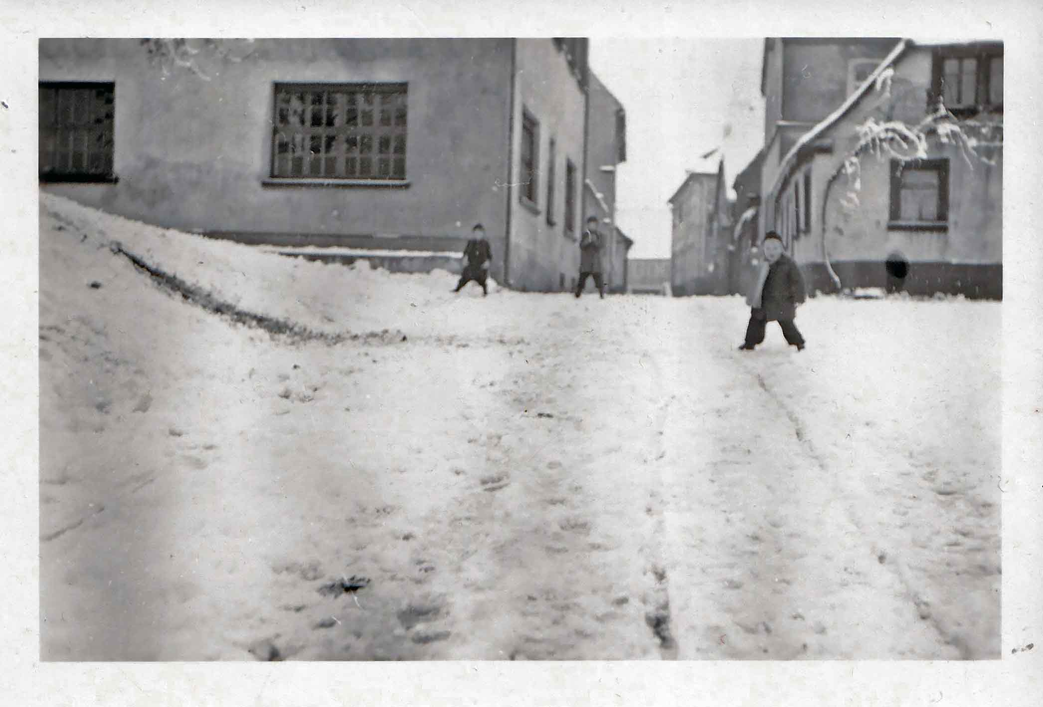 Heutige Raiffeisenstraße Faltermann's und Neumüller-Haus - Winter 1941